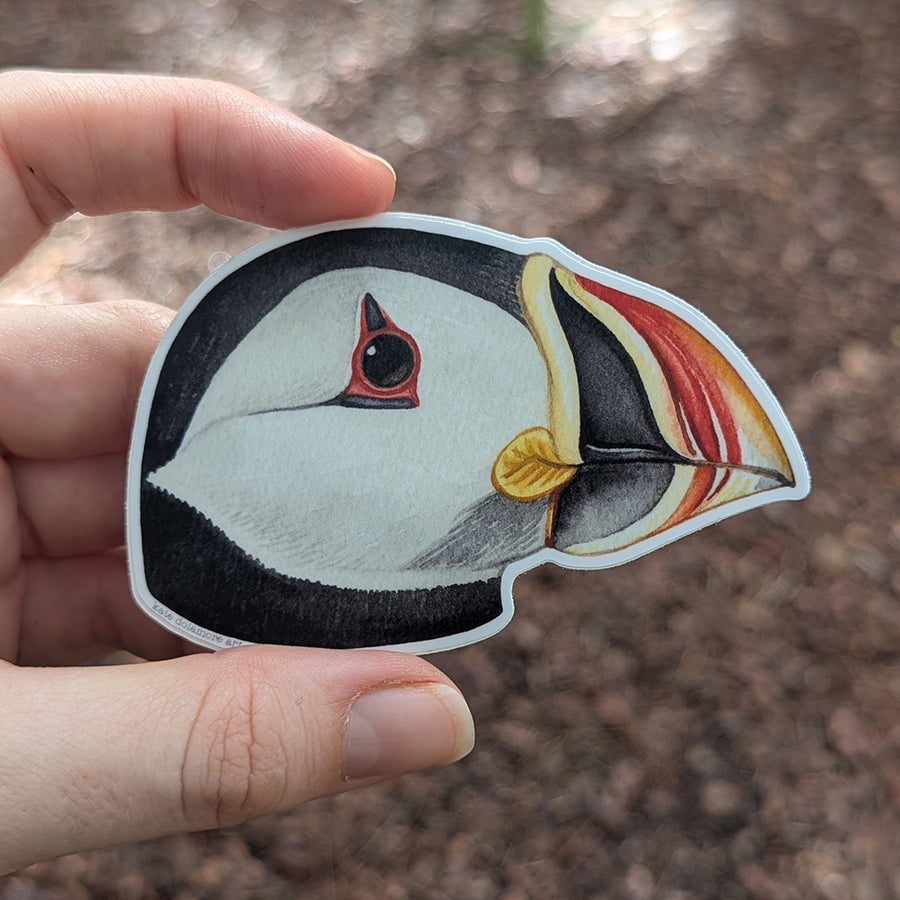The sticker is made of a durable vinyl, laminated to protect against scratches, rain, and sun. It measures approximately 3" inches, has a matte finish and a white border. It can be used on water bottles, laptops, cars, planners, mailboxes, etc.