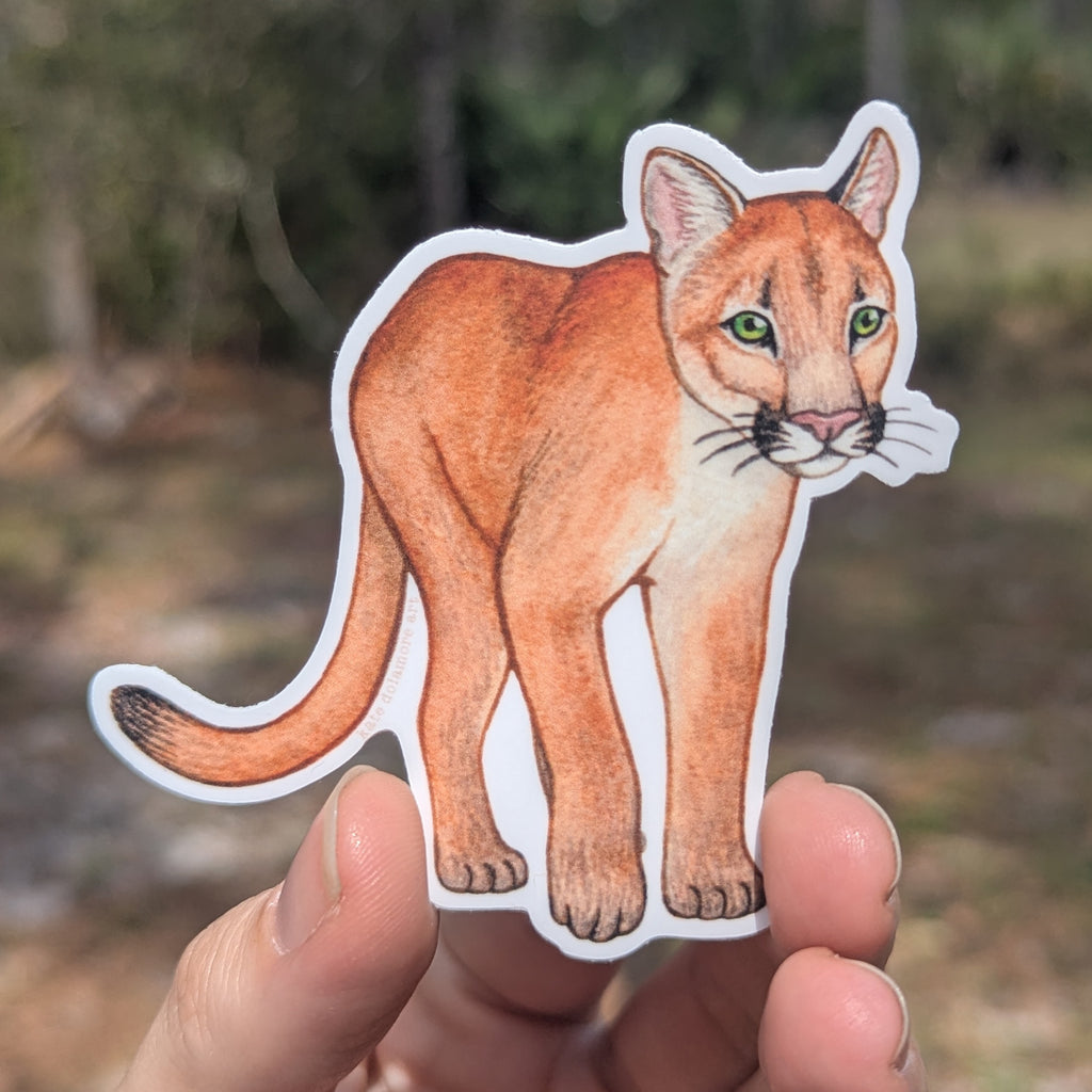 The sticker is made of a durable vinyl, laminated to protect against scratches, rain, and sun. It measures approximately 3", has a matte finish and a white border. It can be used on water bottles, laptops, cars, planners, mailboxes, etc.