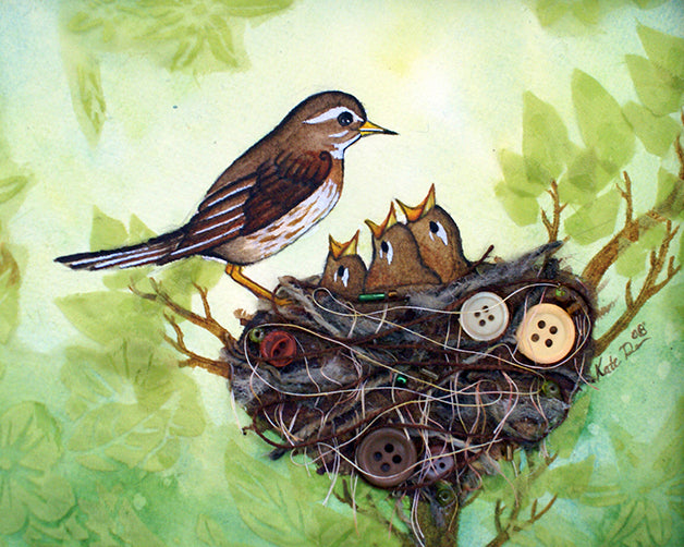 At this time I was shifting focus to birds and began painting a series of bird nests and filling the nests with found objects.