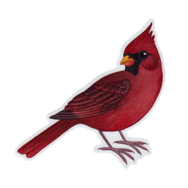 This sticker featuring my watercolor painting of a Northern Cardinal is made of a durable vinyl, laminated to protect against scratches, rain, and sun. It measures 3.75" inches from head to tail, has a matte finish and a white border. It can be used on water bottles, laptops, cars, planners, mail boxes, etc.
