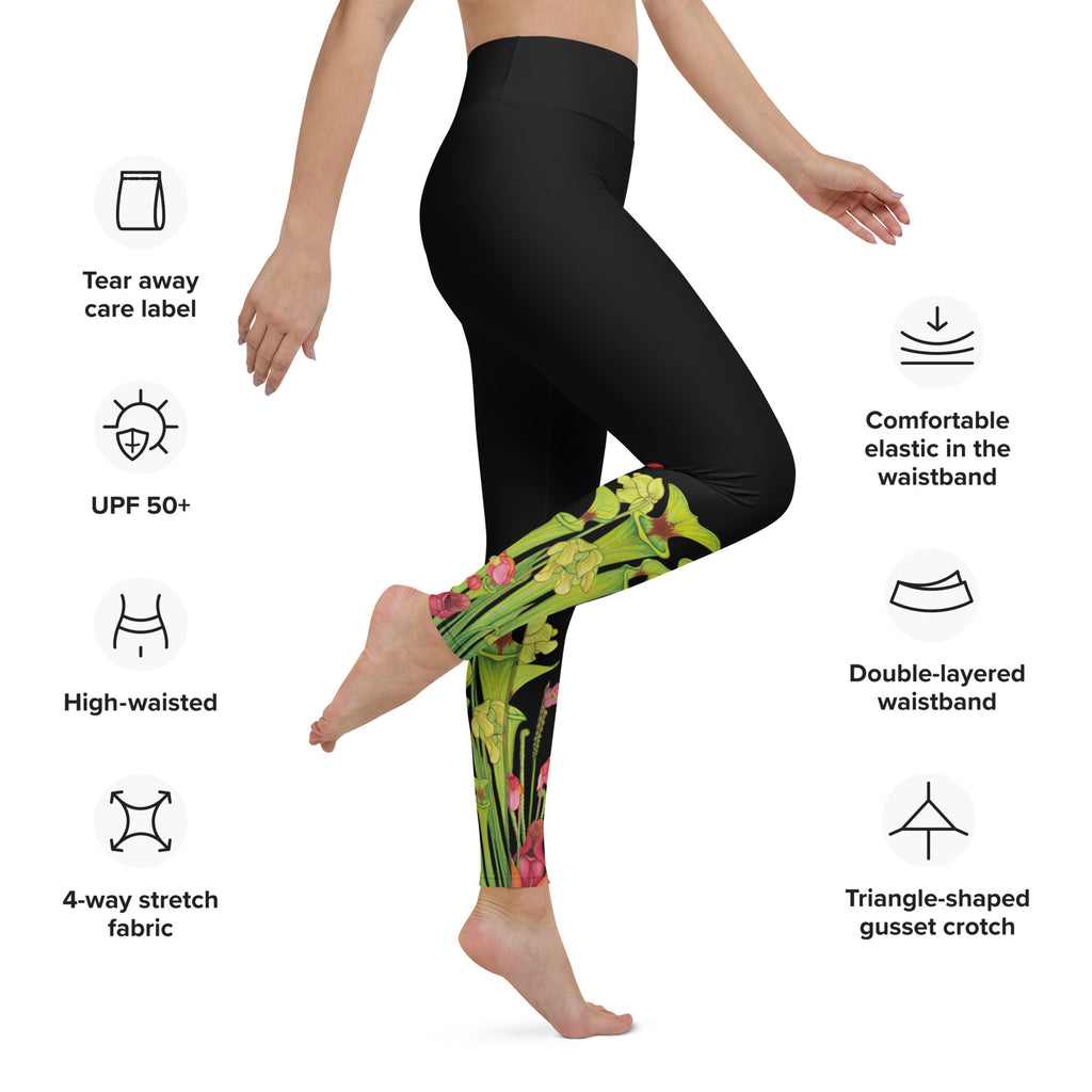These super soft and stretchy yoga leggings are designed so you can be in a pitcher plant bog everywhere you go!